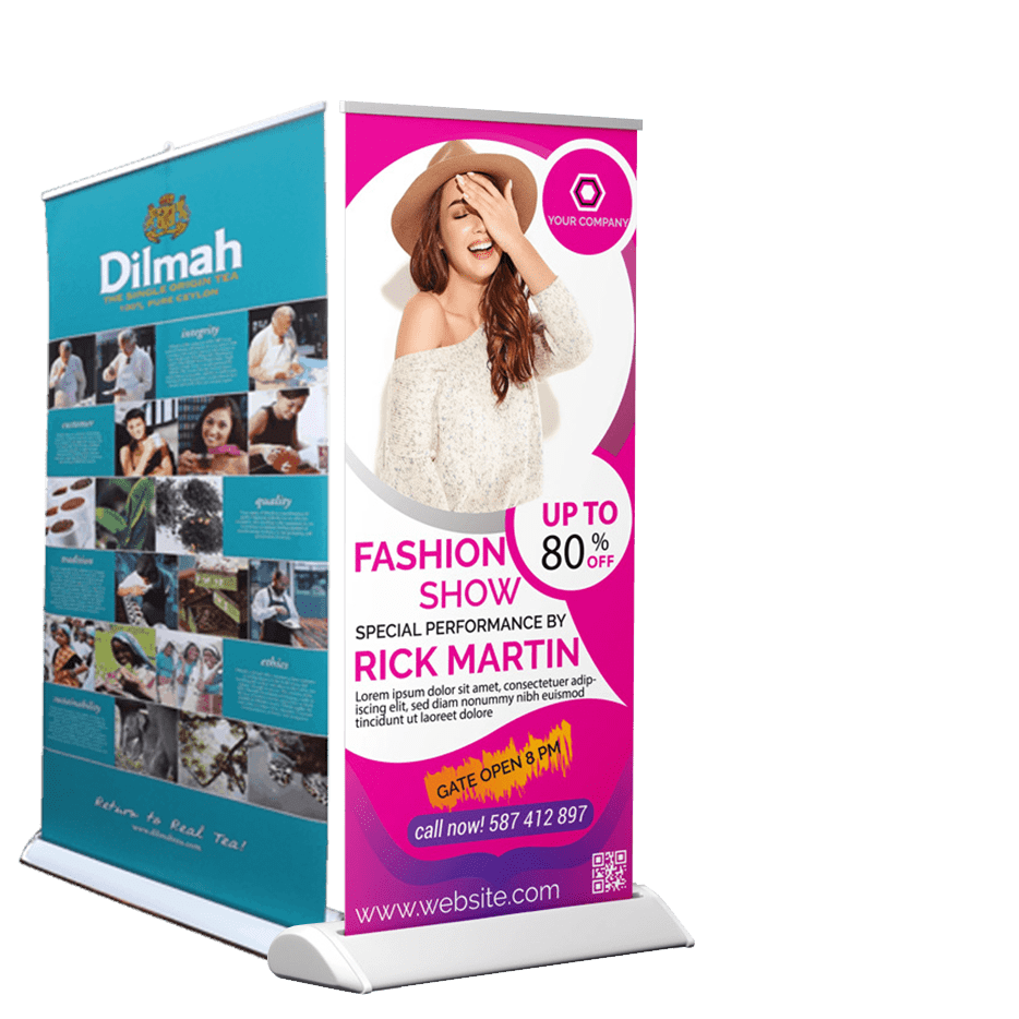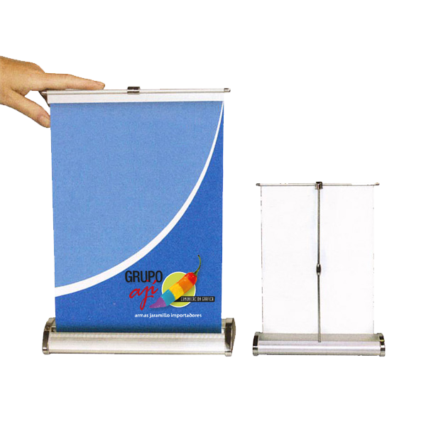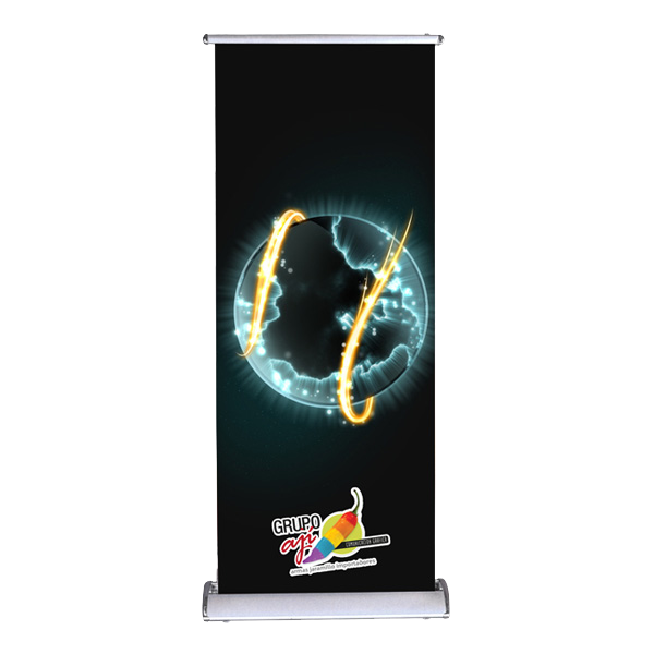 Estructura retráctil en aluminio anodizado con impresión digital en Lafsol Bantec. Un producto que logra combinar las ventajas de los materiales para impresión digital gran formato, conservando una apariencia y nitidez por más tiempo, acompañada de un sistema liviano, que se adapta a cualquier espacio de exposición, es fácil de transportar y se instala en cuestión de minutos.
